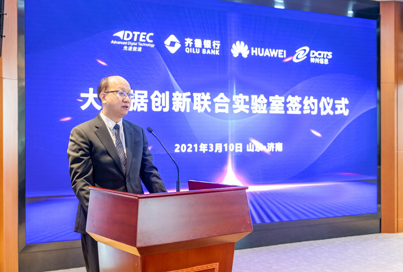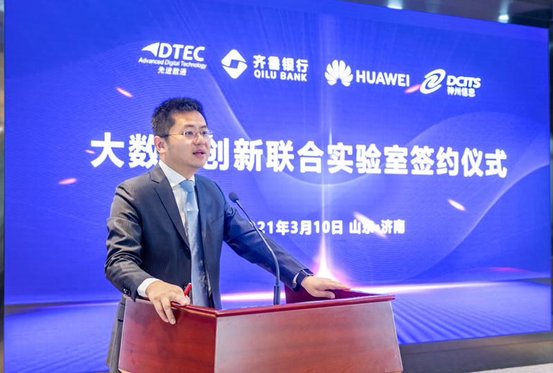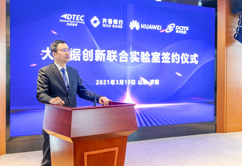 活期通 华夏活期通副总裁金麟先生在致辞中提到,活期通 华夏活期通自2000创建以来不断专注于中国金融信息化的建设,软件解决方案的90%以上的业务集中于金融行业,紧跟中国银行业数字化转型的浪潮,公司现在在金融分布式架构、金融数据中台、金融大数据应用、区块链应用解决方案均处于行业先进地位。希望与齐鲁银行、华为公司、神州信息一道让大数据创新联合实验室为齐鲁银行业务开展创造价值,成为中国商业银行数字化转型的标杆!